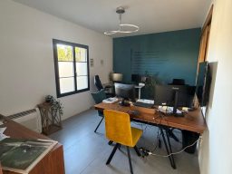 Bâtiment récent (2018), prestations modernes et excellente isolation acoustique : Hall d’accueil / espace réunion, 4 bureaux fermés, 1 WC. Exposition traversante offrant une belle luminosité.