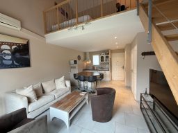 Prestations premium : climatisation réversible, eau chaude individuelle, terrasse privée, parking, pool-house et portail électrique. Charges : 100 €/mois (jardin, eau, wifi, EDF)